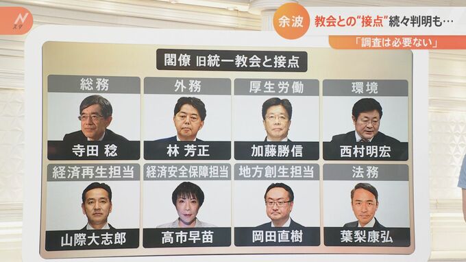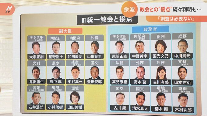 まずは、大臣関係者で旧統一教会と接点が明るみに出たのが8人です。19人にいる閣僚の中での8人。そして、副大臣・政務官に関しては54人中23人、接点が指摘されています。