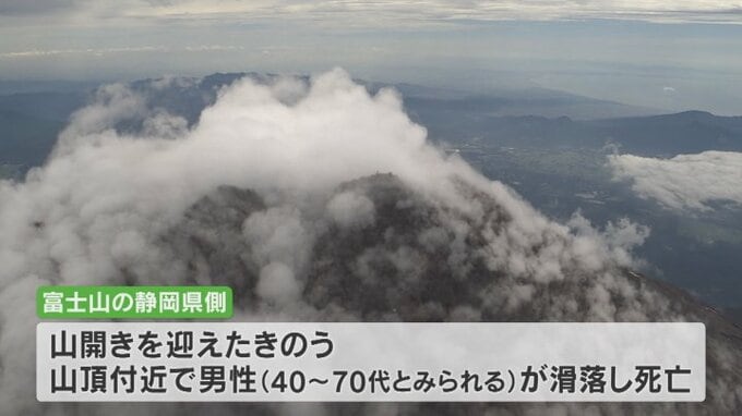 静岡県側では山開きを迎えたきのうも、山頂の剣ヶ峰付近で40代から70代とみられる男性が滑落して死亡したほか、御殿場口8合目の登山道で心肺停止状態の77歳男性が救助されましたが、死亡が確認されました。