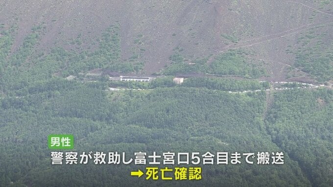 静岡県警が男性を救助し、富士宮口5合目まで運びましたが、死亡が確認されました。
