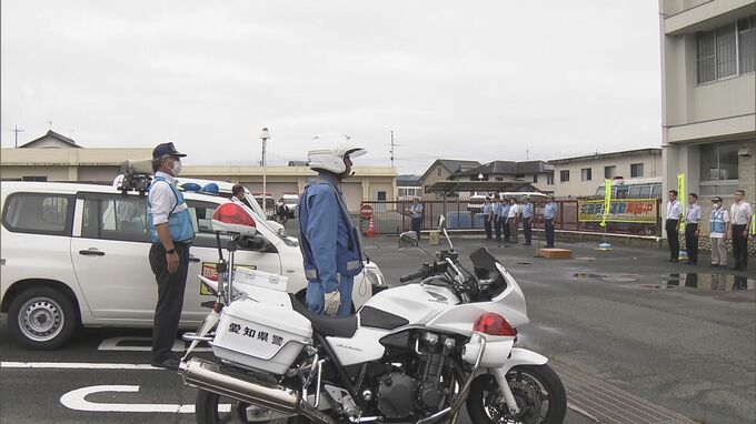 愛知県新城警察署で11日行われた出発式。