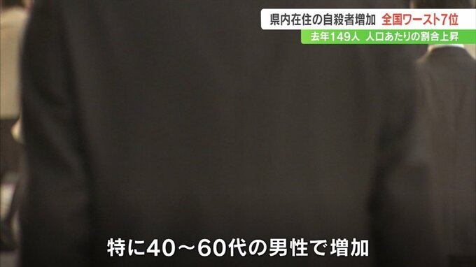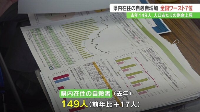 これは県の自殺防止対策を検討する会議で報告されたもので2023年、県内に住む人で自殺をした人は149人で前の年より17人増えました。