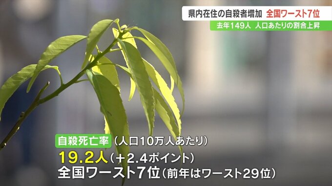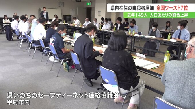 2023年、山梨県内に住む人で自ら命を絶った人は149人で前の年を上回り、人口あたりの割合は全国ワースト7位と大幅に悪化しました。