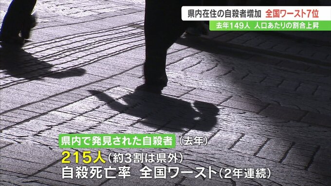 一方、去年、県内で発見された自殺者は215人で県外の人が約3割に上りました。