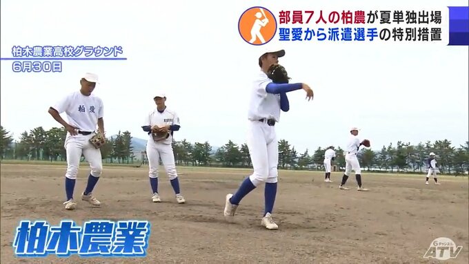 2024年に柏木農業の野球部の部員数は7人に―。本来は単独チームとして出場できませんが、聖愛から3人の選手の派遣を受ける形で「夏の大会」に出場します。