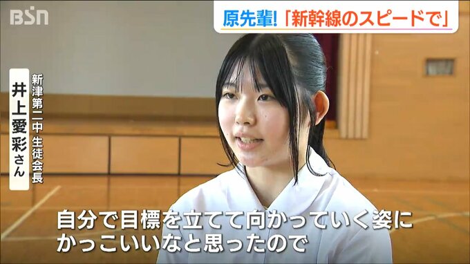 中学校の先輩である原選手を応援しようと生徒会本部が企画しました。来週には、生徒の有志でビデオメッセージも撮影する予定です。