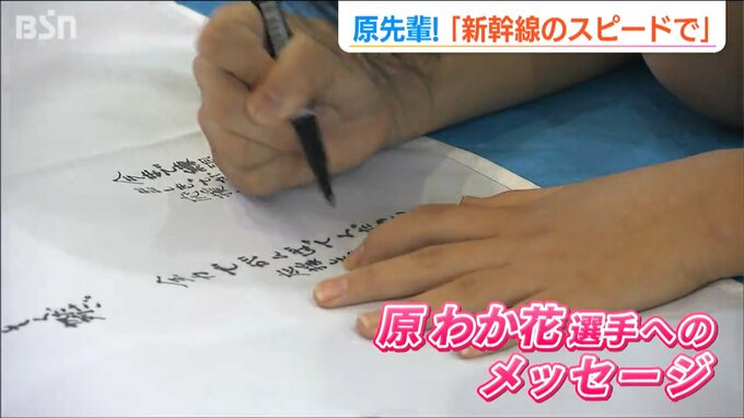 女子7人制ラグビーでパリオリンピック™に出場する新潟市出身の原わか花選手を応援しようと、原選手の後輩の中学生たちがメッセージの寄せ書きを始めました。