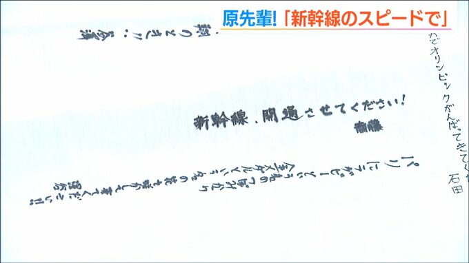 寄せ書きとビデオメッセージは、オリンピックの開幕前に原選手の家族に届けることにしています。