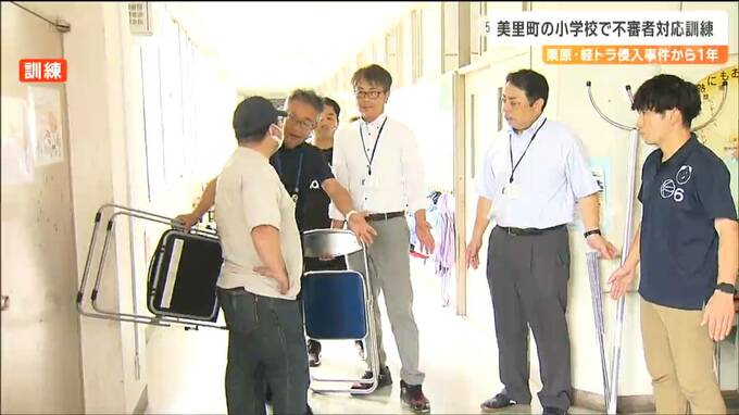 美里町の不動堂小学校では、およそ25人の教職員が480人の児童を守るための訓練をしました。不審者が校内に侵入するという想定で、教職員がパイプ椅子などを持ち、教室に入るのを防ぐための声がけなどを確認しました。