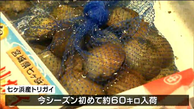 若林区の仙台市中央卸売市場には朝、七ヶ浜産のトリガイが今シーズン初めておよそ60キロ入荷し、仲買人らが競り落としていきました。