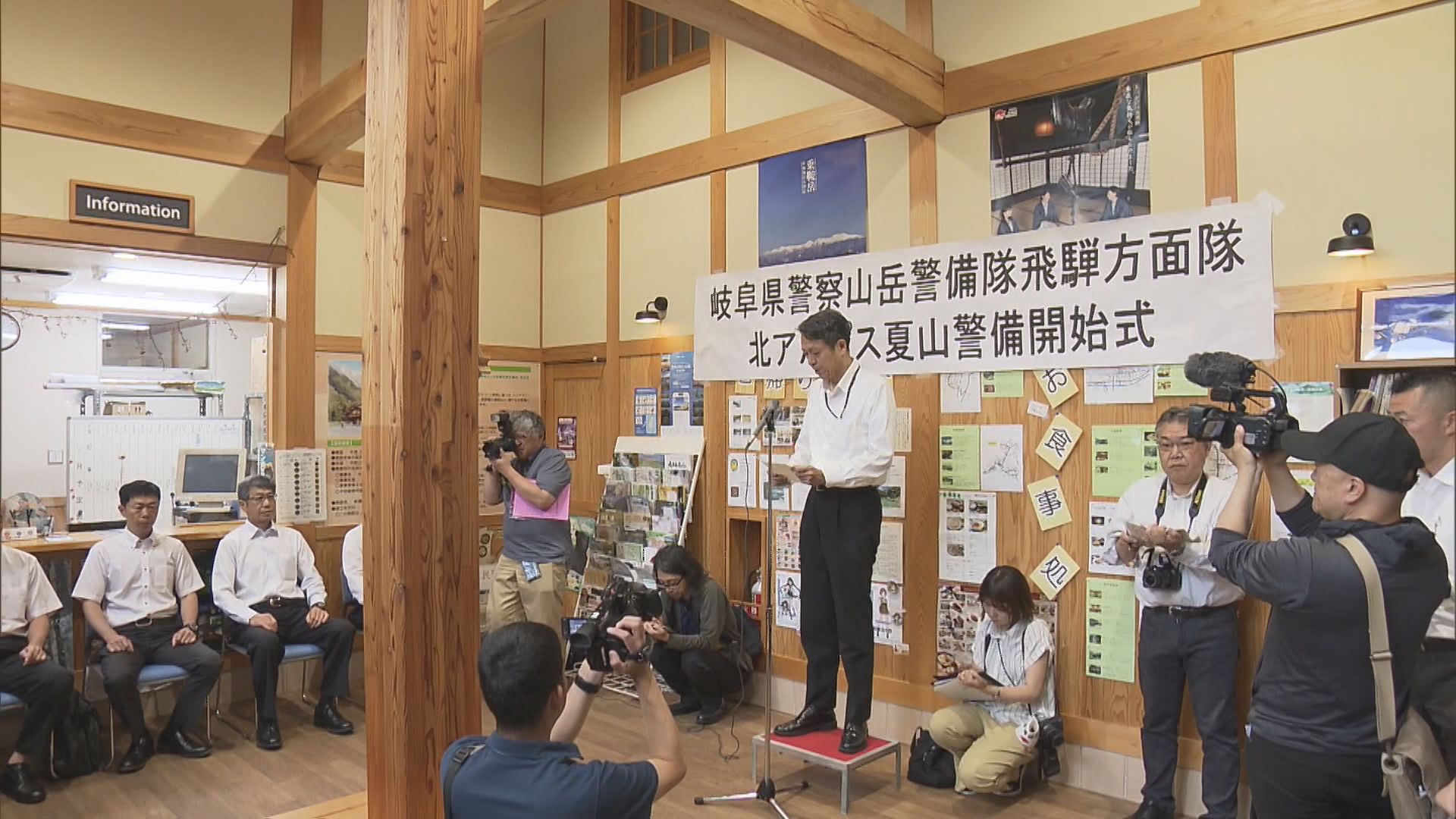 11日の警備開始式には、岐阜県警山岳警備隊の隊員ら約40人が出席しました。高山市の新穂高登山指導センターには、8月19日まで救助隊員が常駐するほか、標高2996メートルにある穂高岳山荘では、隊員3人が24時間態勢で事故に備えます。