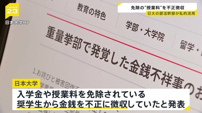 日本大学は、重量挙げ部の幹部が入部予定の新入生で授業料などを免除されている学生から「免除は2年目から」などとうそを言い、不正に金銭を徴収していたと発表しました。日本大学は、重量挙げ部の幹部が去年12月…