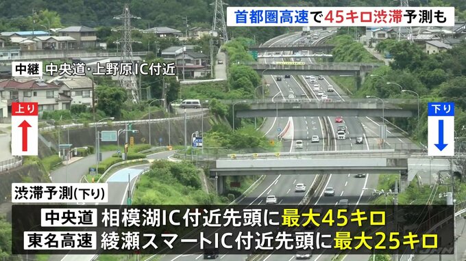 あさって月曜日は「海の日」です。3連休初日のきょう、首都圏の高速道路では下りが渋滞のピークを迎えていて、最大45キロの混雑も予測されています。午前11時20分現在、▼関越道の坂戸西スマートインターチェンジ…