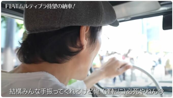その一方、歩道からファンの声がけに応えながら「おれ(運転に)必死やねん」と、慣れぬ旧車の運転に集中している様子。「変な車ほど『慣れてる』と思うよな」と周囲からの目を意識しています。