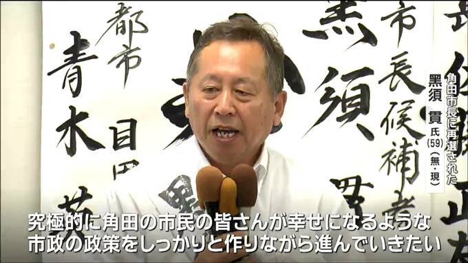 任期満了に伴い7月14日に告示された宮城県角田市の市長選挙は、現職の黑須貫氏が無投票で再選を果たしました。角田市長に再選された黑須貫氏(59)=無・現=「角田市にとってどんな市政がいいのかということを相…