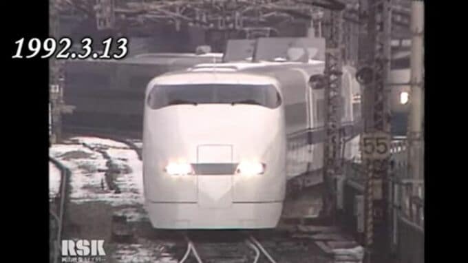 この年、開業から20年を迎えた山陽新幹線ですが、一方でこの時のダイヤ改正で、東京ー新大阪間の目玉として登場する新型車両300系「のぞみ号」が登場。山陽新幹線でも、翌年(1993年)から投入されることになりました【画像⑳】。