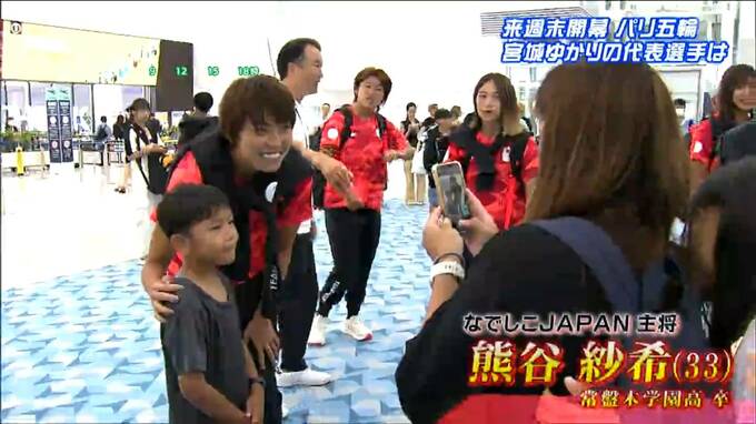 14日、パリへ出発したのは女子サッカー、なでしこジャパンです。常盤木学園高校卒、熊谷紗希選手は2大会連続でキャプテンを務めます。空港ではバレーボール男子代表と共に出発式が行われました。