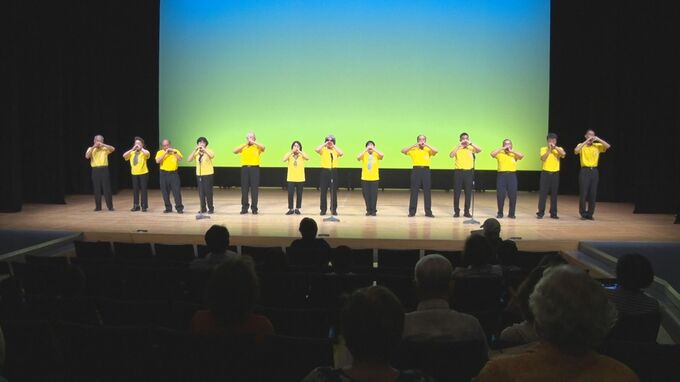 13日に浦添市で開かれたコンサートでは、指笛の合奏や独奏で歌謡曲や民謡など27曲のメロディーが披露されました。