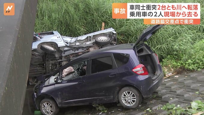 けさ、栃木県栃木市で軽トラックと乗用車が衝突し、そのはずみで2台とも道路脇の川に転落しました。このうち乗用車に乗っていた2人が現場から立ち去っているということです。警察官が調べる橋の下には、2台の車が…