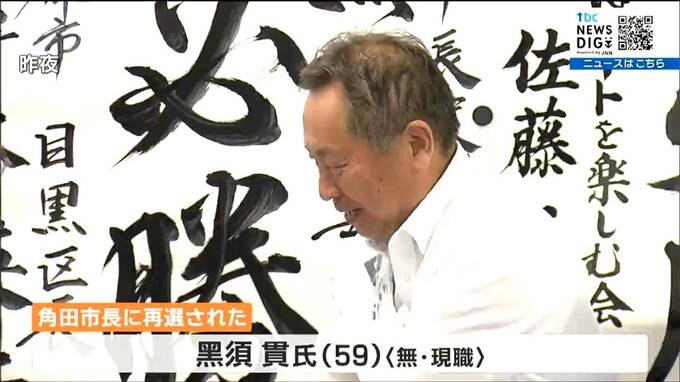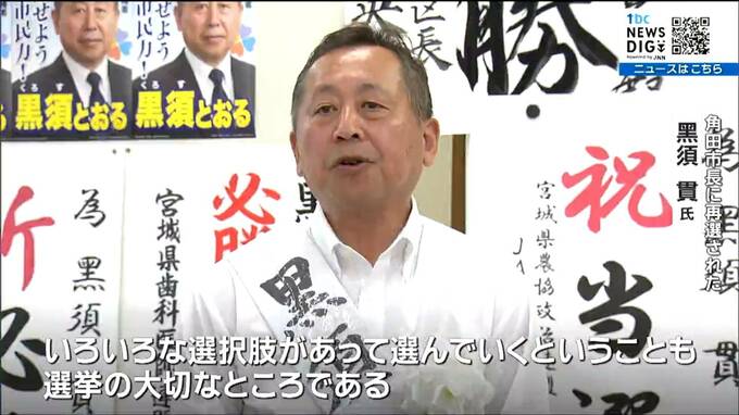 角田市長選で再選された無所属の現職、黑須貫氏(59)。2019年の台風19号による豪雨被害を受けた阿武隈川流域の防災・減災の取り組みをさらに強化する考えを示しました。