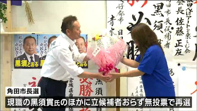 任期満了に伴い14日告示された宮城県角田市の市長選挙は、現職の黑須貫氏が無投票で再選を果たしました。角田市長選で無投票となったのは12年ぶりです。