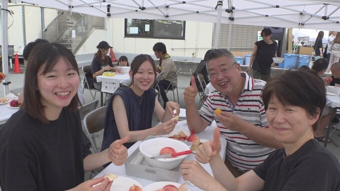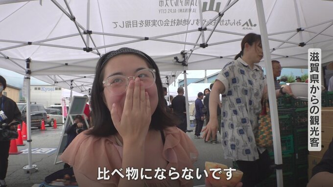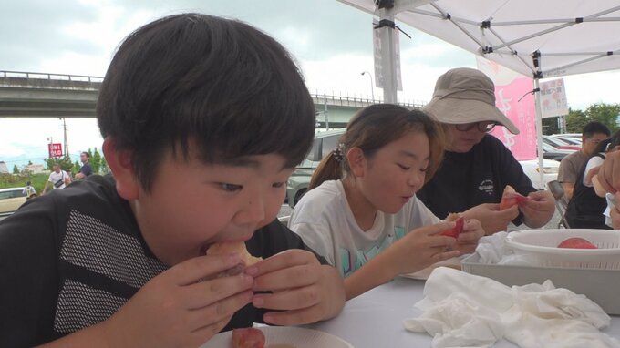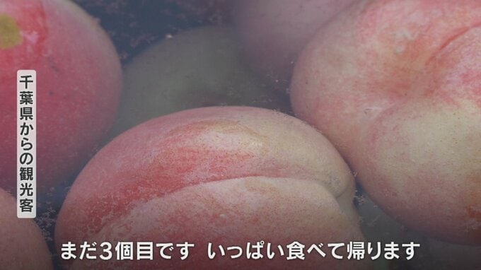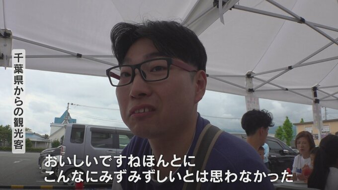 「美味しいですねほんとに。こんなにみずみずしいとは思わなかった。まだ3個目です。いっぱい食べて帰ります」