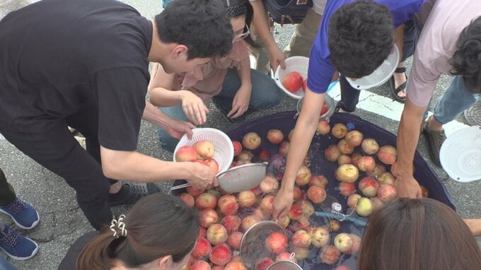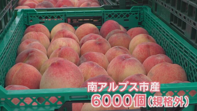 用意されたのは南アルプス市内で収穫され、色付きなどの問題で出荷できない規格外のモモ約6000個で、品質に問題ありません。