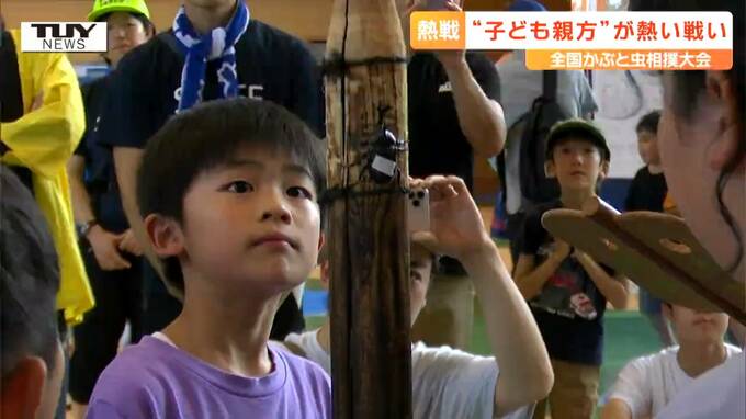 山形県中山町ではきょう、海の日恒例の全国かぶと虫相撲大会が開かれ、熱い戦いが繰り広げられました。「はっけよーいのこった!のこったのこったのこった」全国かぶと虫相撲大会には、1歳から小学6年生までの子ど…