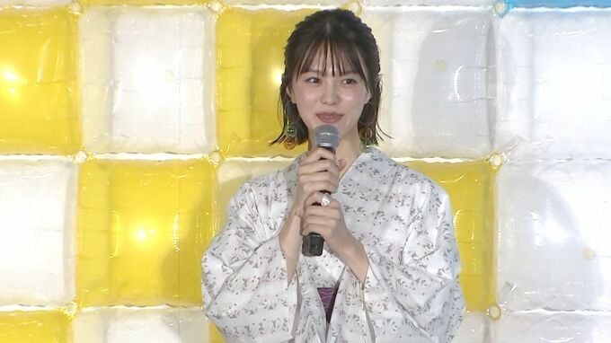 大西さんは、夏らしい白地の浴衣姿で登場し、“皆さん本当にすてきで、撮影のときの制服姿とはガラリと変わって大人っぽくも見えたり、作品と照らし合わせて見ていただけると、全然違うキャラクターを演じてたんだなって改めて思って、ドキドキしています“と、フレッシュにコメント。