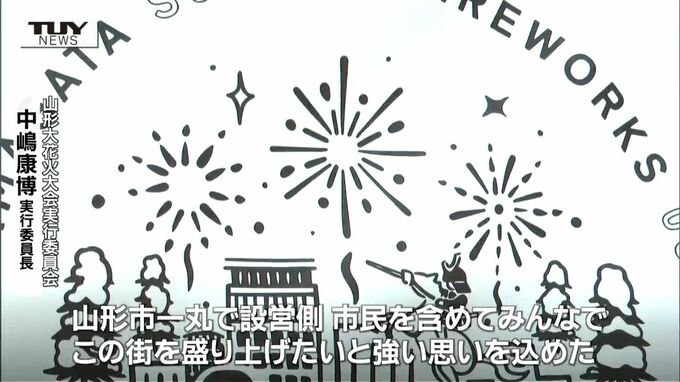 山形大花火大会実行委員会 中嶋康博 実行委員長「今年の大会テーマはFamilyと掲げさせていただきました。Familyには、山形市一丸となって、設営側・市民を含めて、みんなでこの街を盛り上げていきたいという強い思いを込めた」