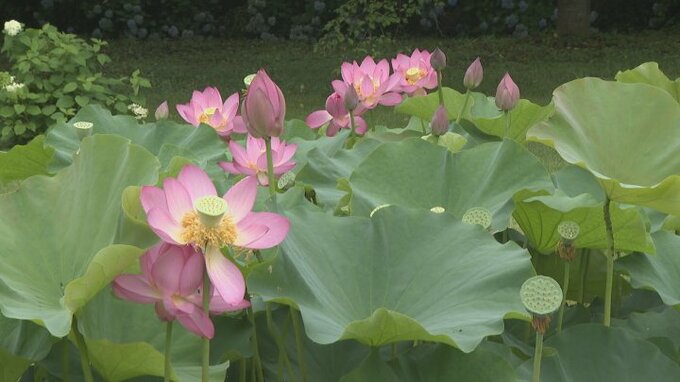 山梨県韮崎市内の池で古代の花=「大賀ハス」が見頃を迎えています。