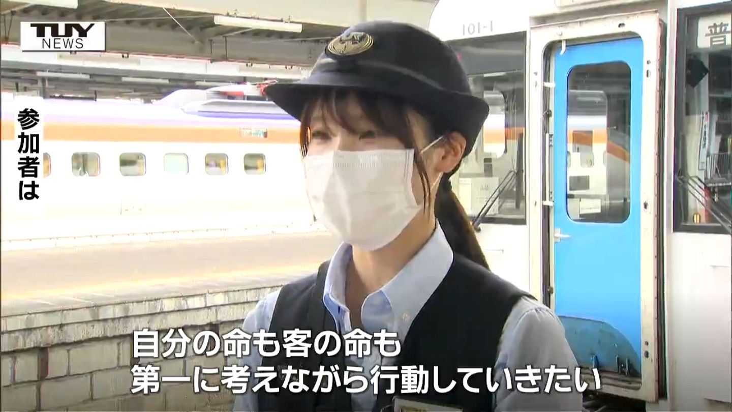 こうしたことを受け、JR東日本山形地区では、不審者に対応するための訓練を毎年警察と連携し行っていて、きょうは、グループ会社なども含め職員69人が参加し、不審者への対応方法を確認しました。