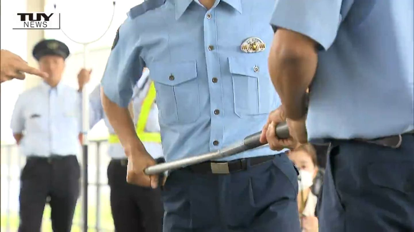訓練では護身用具の使い方も伝えられ、警察からは「不審者から目を離さず距離をとり、身の安全を確保したうえですばやく情報を警察に伝えてほしい」と呼び掛けられました。