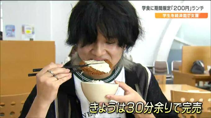 相次ぐ物価上昇による学生たちの経済的負担を支援する取り組みです。宮城県名取市の尚絅学院大学に16日から、期間限定で200円のランチメニューが登場しました。野菜の小鉢が付いた学生たちに人気のチキンチーズカ…