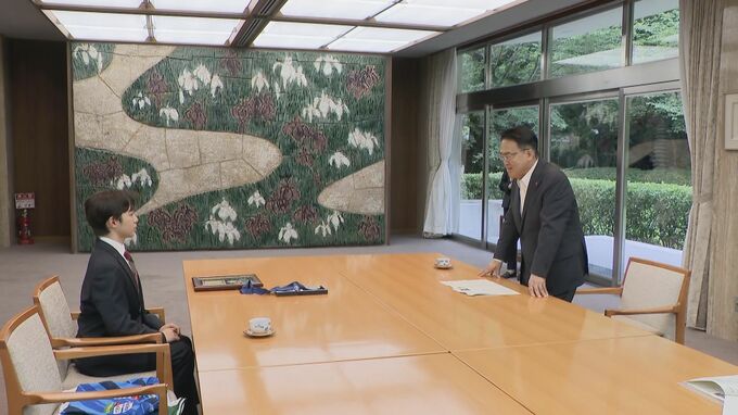 愛知県の大村知事は楯と記念品を手渡し「けがを乗り越えて活躍したことに、お祝い申しあげたい」と栄誉を称えました。