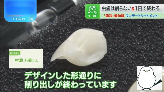 「これまでは型を取るときに、温かいガムみたいなものを口に入れて噛む。これだと温度の変化によって伸び縮みして、実際の口の中と違う模型が出来上がることもあった。3Dなら正確なピタッとした詰め物を作ることができる」