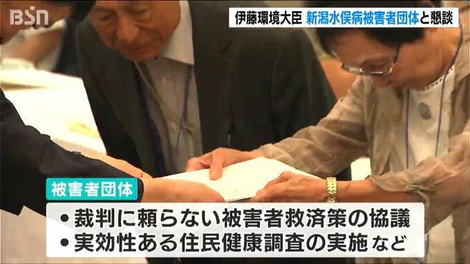 懇談には新潟水俣病阿賀野患者会など3つの団体が出席し、裁判に頼らない被害者の救済策の策定などを求めました。