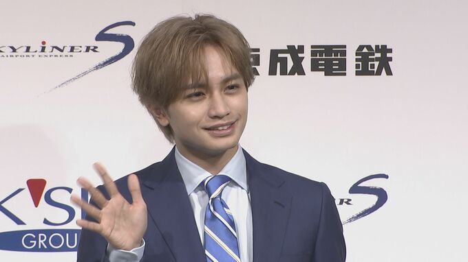 俳優で歌手の中島健人さんが、京成スカイライナーご利用5000万人記念式典に登場しました。