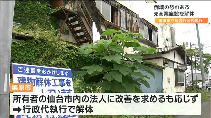 宮城県栗原市で行政代執行による初めての解体となります。長年、空き家状態となっている元商業施設について、栗原市は、建物が倒壊する恐れがあるとして17日、行政代執行による解体工事に着手しました。
