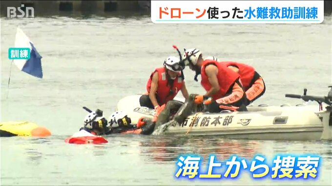 潜水士が海の中に入り、すぐさま引き上げ心肺蘇生を行うなど連携を確認しました。