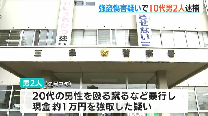 警察によりますと2人は6月中旬、三条市の駐車場で20代の男性を呼び出し、殴る蹴るなどの暴行を加えて現金およそ1万円を奪った疑いがもたれています。