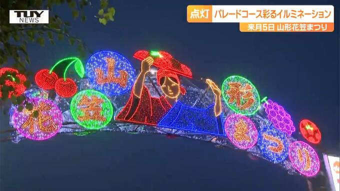来月5日に始まる「山形花笠まつり」。開催に先立ち、まつりのパレードコースを彩るイルミネーションが、きのうから灯されています。 大内希美アナウンサー「今アーチが点灯し、祭りのパレードコースが一気に明…