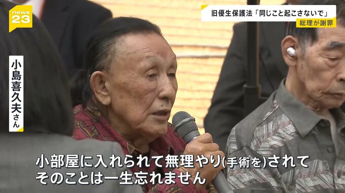 「私は19歳のとき、病院に入れられて、精神分裂症というあだ名をつけられて、そして優生手術をされました。小部屋に入れられて無理やり(手術を)されて、そのことは一生忘れません」