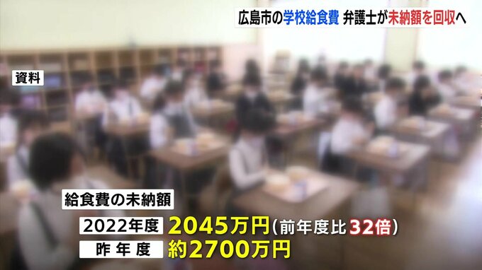 学校給食費の未納額が急増していることを受け、広島市は、未納額を回収する業務を、早ければ来月から弁護士に委託する方針です。広島市教育委員会によりますと、小・中学校の給食費の徴収は、学校の働き方改革のた…