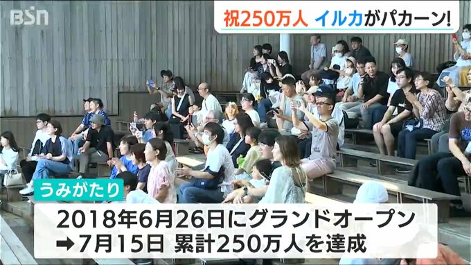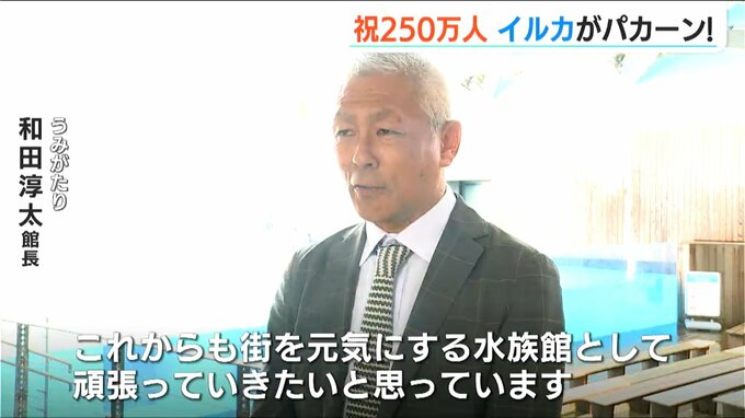 上越市の水族博物館「うみがたり」は今月15日に来館者250万人を達成し18日、記念のセレモニーが行われました。