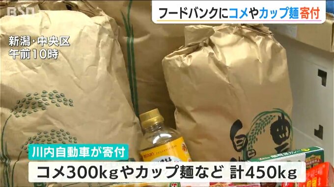 物価高で支援を求める人が増える中、新潟市の自動車販売会社が「フードバンクにいがた」に米など450キロを寄付しました。