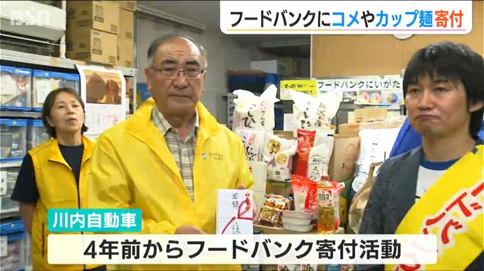 「フードバンクにいがた」に寄付したのは新潟市秋葉区の川内自動車です。