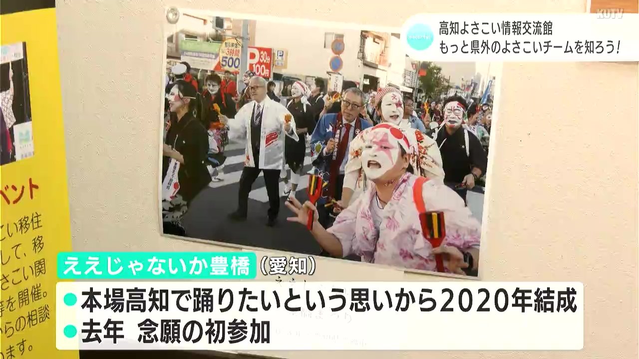 また愛知県のチーム「ええじゃないか豊橋」本場・高知でよさこいを踊ってみたいという思いから2020年にチームを結成。去年念願の初参加を果たしました。会場ではこのような各チームのよさこいにかける思いを知ることができます。