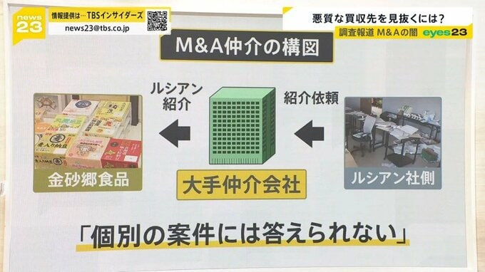 一方、取材を進めると気になったのが、ルシアン社側から企業の紹介依頼を受け、ルシアンに対して金砂郷食品を紹介した、間に入っている大手仲介会社の責任です。