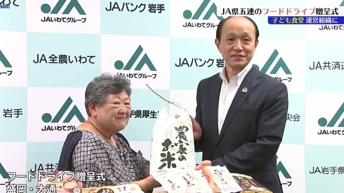 JA岩手県五連の職員らが19日、家庭から持ち寄った食料品などを子ども食堂の運営団体に寄付しました。19日の贈呈式では、集められた食料品がJA岩手県五連の伊藤清孝会長から、子ども食堂を運営する団体などでつくる…