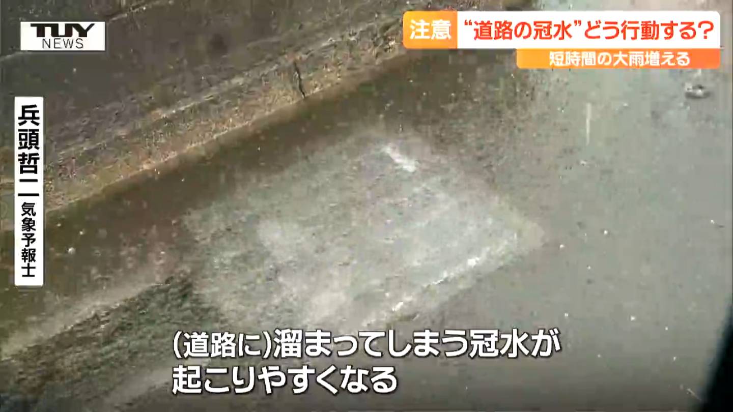 兵頭哲二 気象予報士「気温の上昇によって空気中に含まれる水蒸気の量が増えていると考えられる。短時間での大雨、山形でも今後も増えていくと考えられる。短い時間で降る大雨は、水を流すことができなくて溜まってしまう冠水が起こりやすくなる」